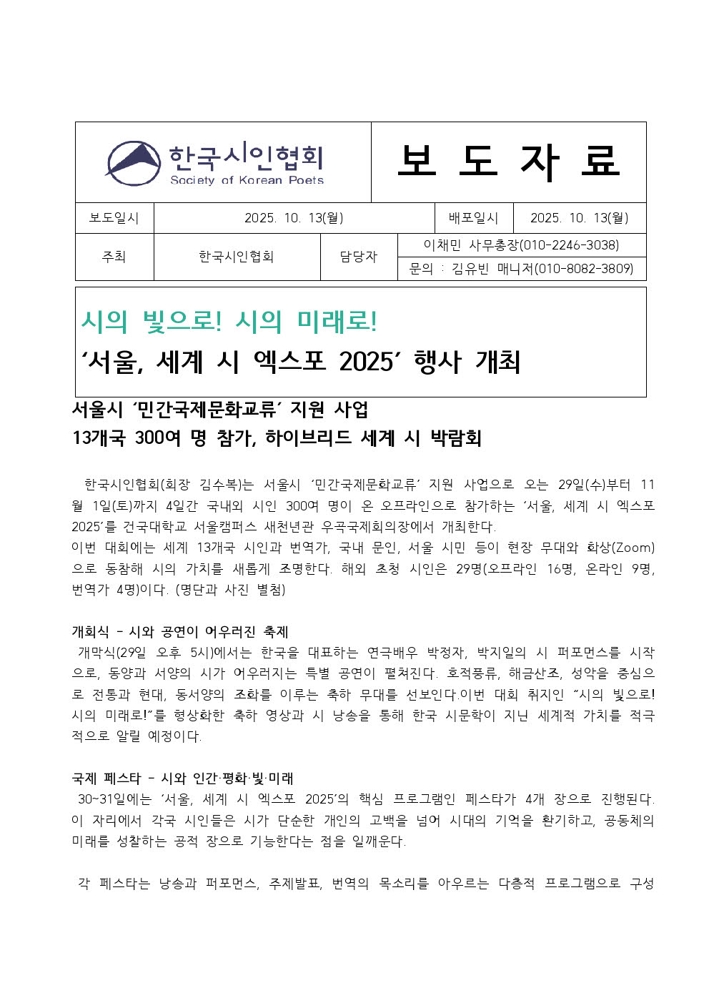 ȨÆäÀÌÁö º¸µµÀÚ·á ¼¿ï ¼¼°è ½Ã ¿¢½ºÆ÷ 2025 ¿À´Â 29ÀÏ °³¸·.hwp